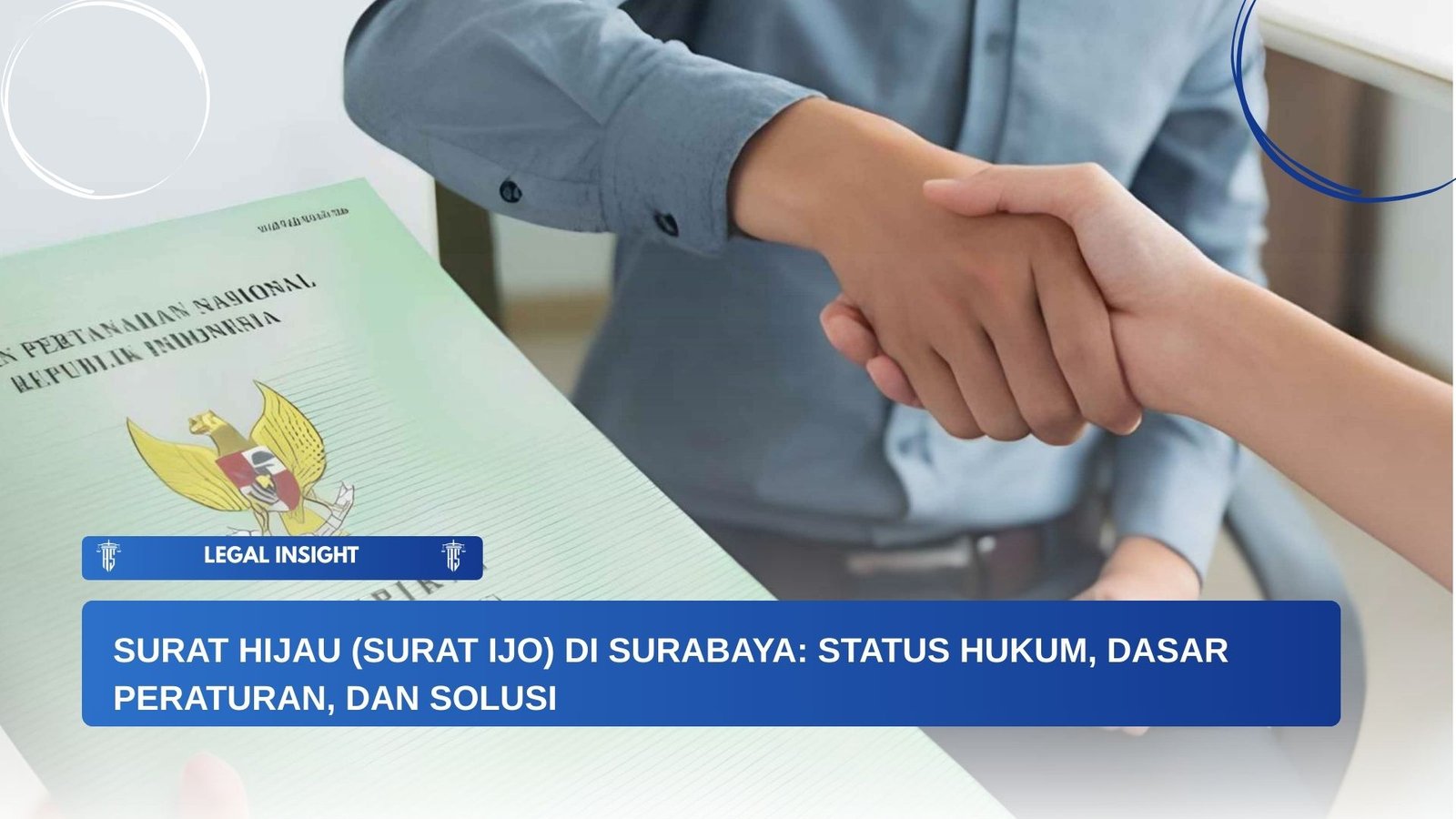 Mengenal Lebih Dekat Surat Hijau di Surabaya Surat Hijau atau yang lebih dikenal sebagai Surat Ijo adalah Izin Pemakaian Tanah (IPT) yang diberikan oleh Pemerintah Kota (Pemkot) Surabaya. Surat ini memungkinkan warga untuk menempati tanah yang merupakan aset Pemkot atau berada di